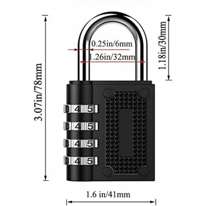 Навесной замок изготовлен из прочного металла, устойчивого к коррозии и механическим повреждениям. Идеально подходит для повседневного использования – в тренажерном зале, бассейне, в школе и во время путешествий. Универсальный черный цвет придает ему элегантный вид и вписывается в любую обстановку.