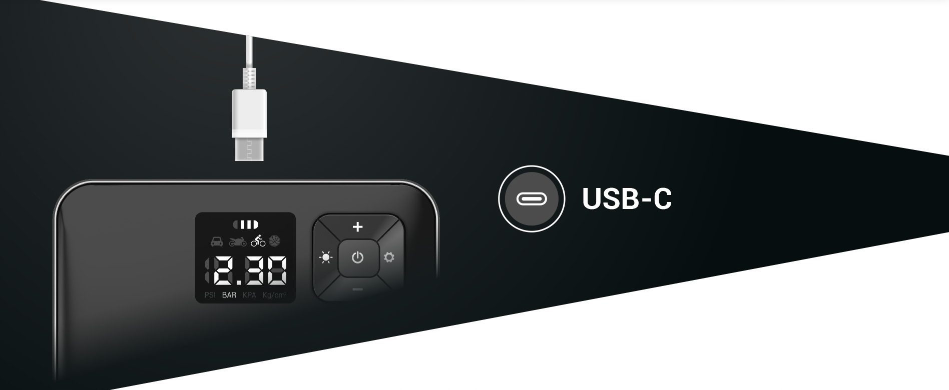 Благодаря яркому цифровому дисплею вы увидите нужные вам показатели даже в полной темноте. Используйте NAVITEL AIR 15 AL не только для накачивания шин, но и для проверки их давления. Подключите устройство и включите питание, и на дисплее появится начальное значение текущего давления в шинах.