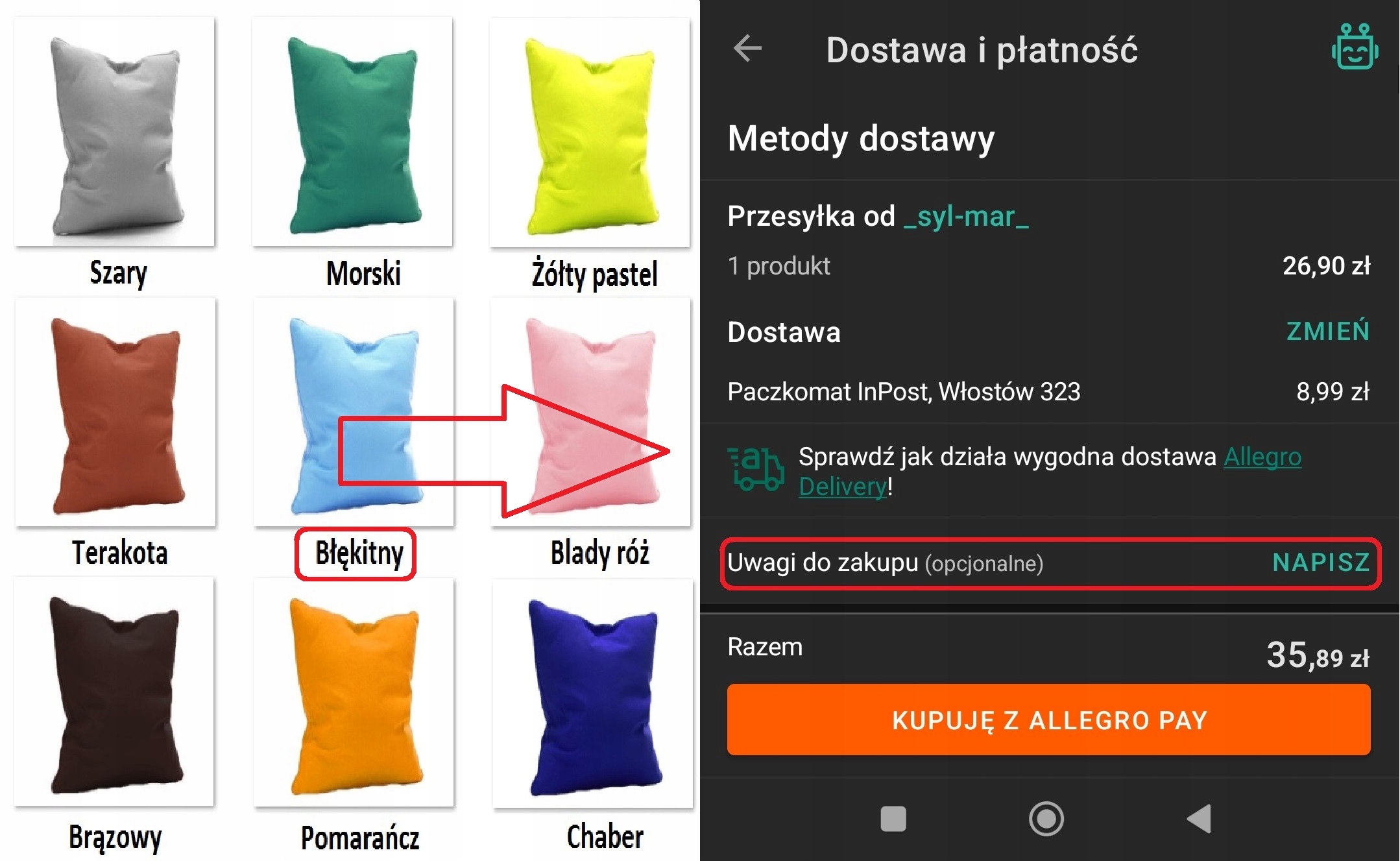 Цвет необходимо указать при покупке в форме «Доставка и оплата» в поле комментария к покупке.