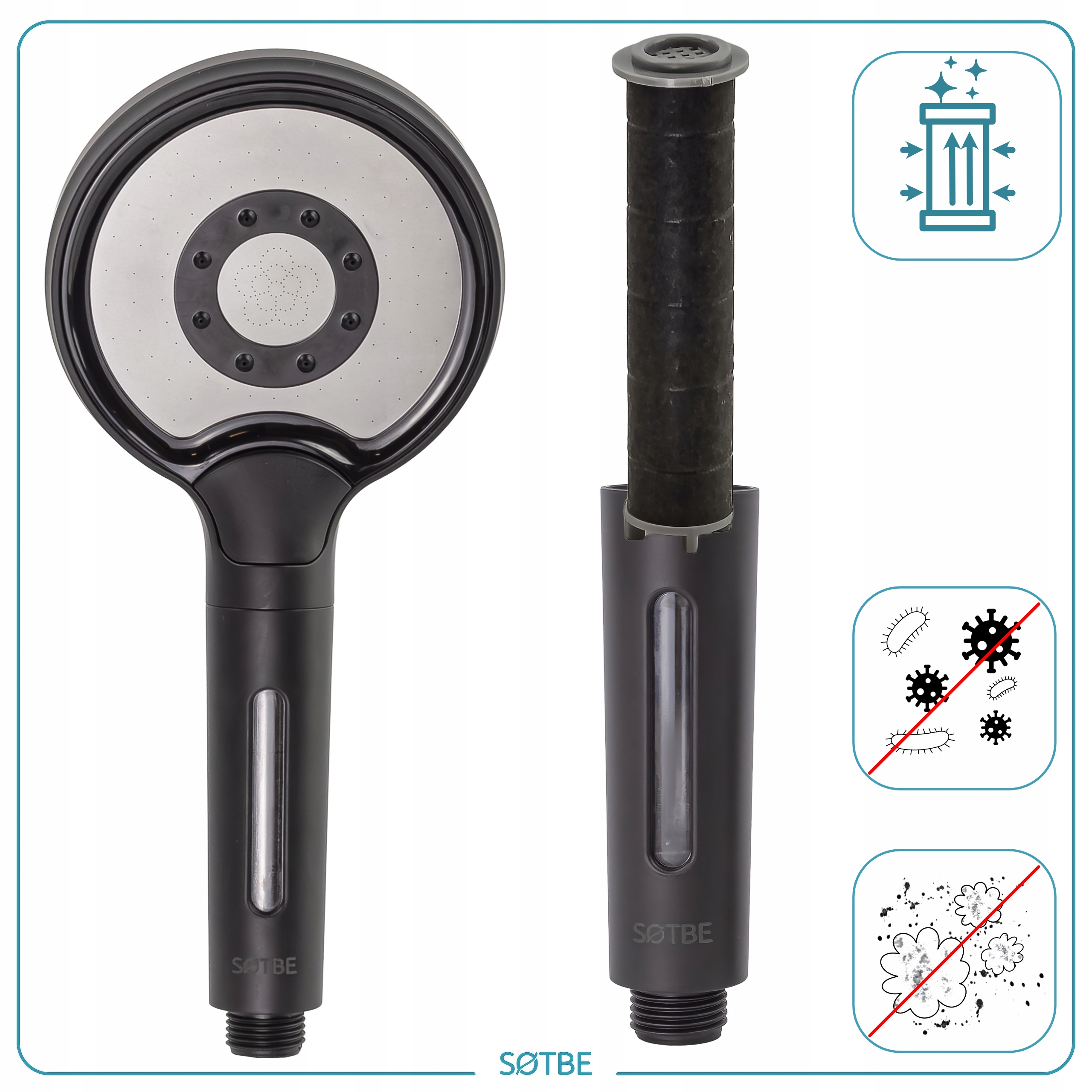 SOTBE LARK SAVA BLACK Душевая насадка на 3 диапазона с хлопковым фильтром. Цвет черный