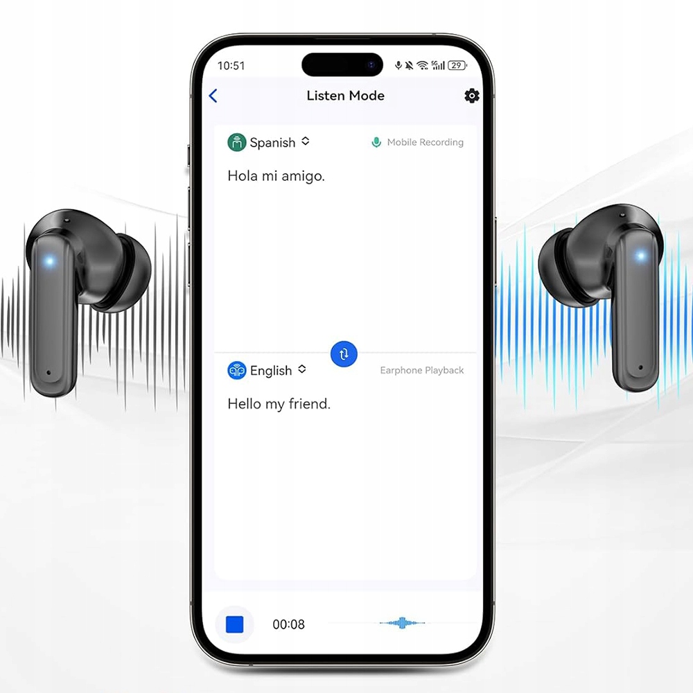 Наушники-переводчики поддерживают до 144 языков, обеспечивая точность перевода до 98%. Благодаря усовершенствованному алгоритму искусственного интеллекта они исключают задержки, позволяя вам вести деловые переговоры, путешествовать или заводить друзей за границей так же естественно, как на родном языке.