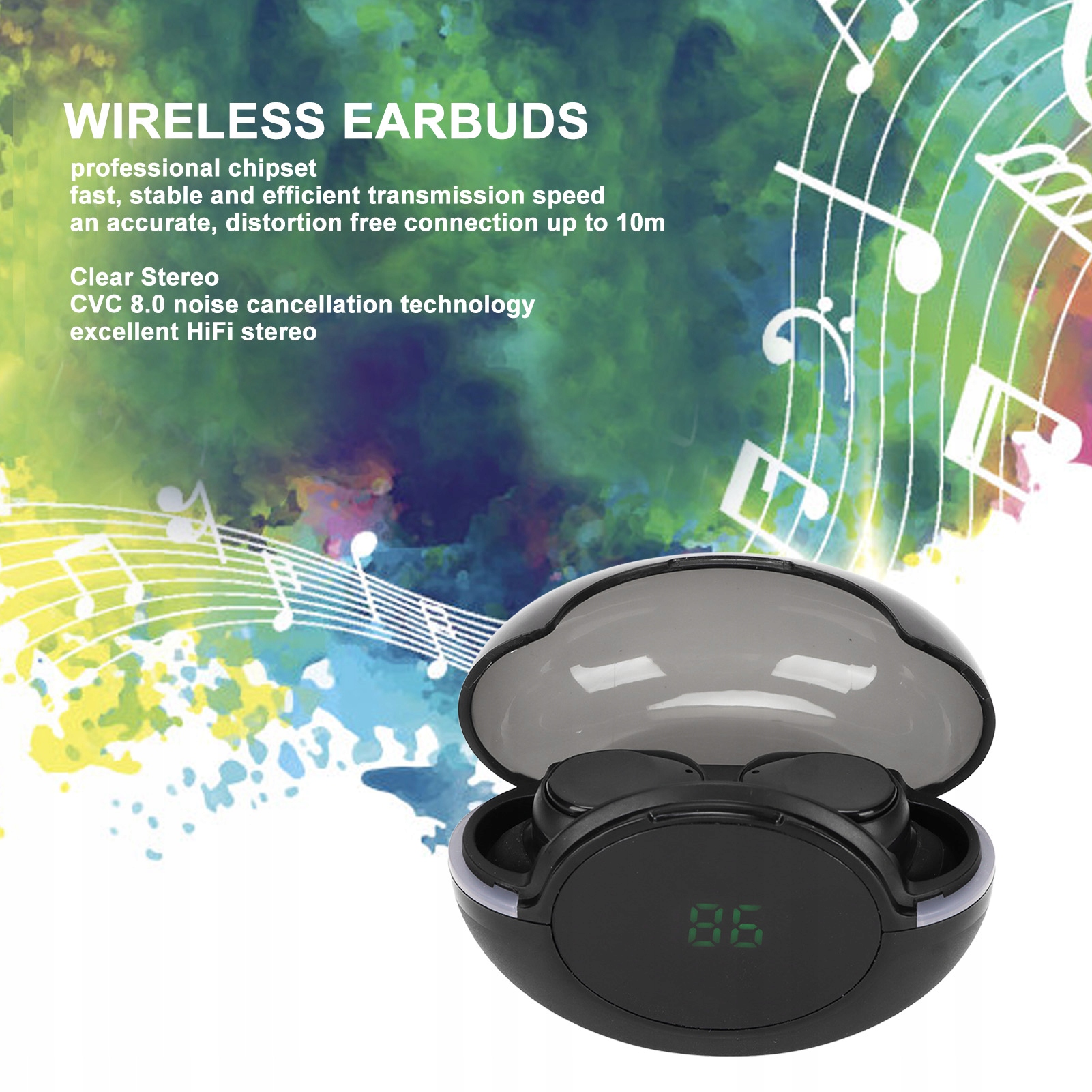 3. Чистый стереозвук: наушники-вкладыши Bluetooth обеспечивают кристально чистый звук благодаря технологии шумоподавления CVC 8.0. Отличная стереосистема HiFi подарит вам слуховой праздник. Встроенный микрофон позволяет ответить на звонок или повторно набрать последний звонок.