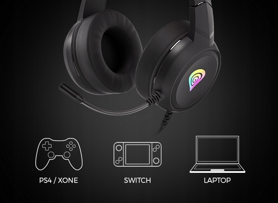 Классический черный цвет в сочетании со стильными канавками и красной губкой на оголовье придает агрессивный вид, а подсвеченный логотип в цветовой палитре RGB делает наушники просто молодец.