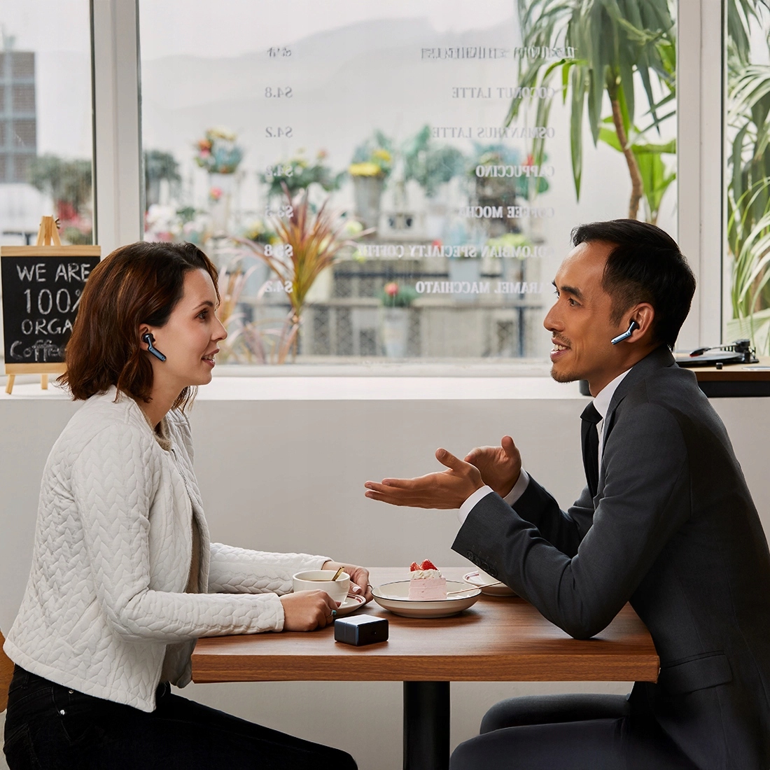 - Один-к-одному:вы надеваете один наушник, собеседник носит другой, и вы сразу слышите перевод на ваших языках.