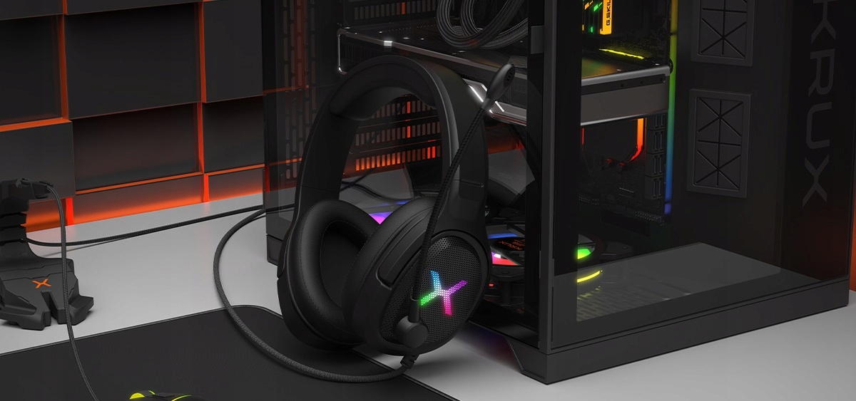 Наушники с микрофоном для игроков Krux Popz Gaming RGB BATERLIGHT