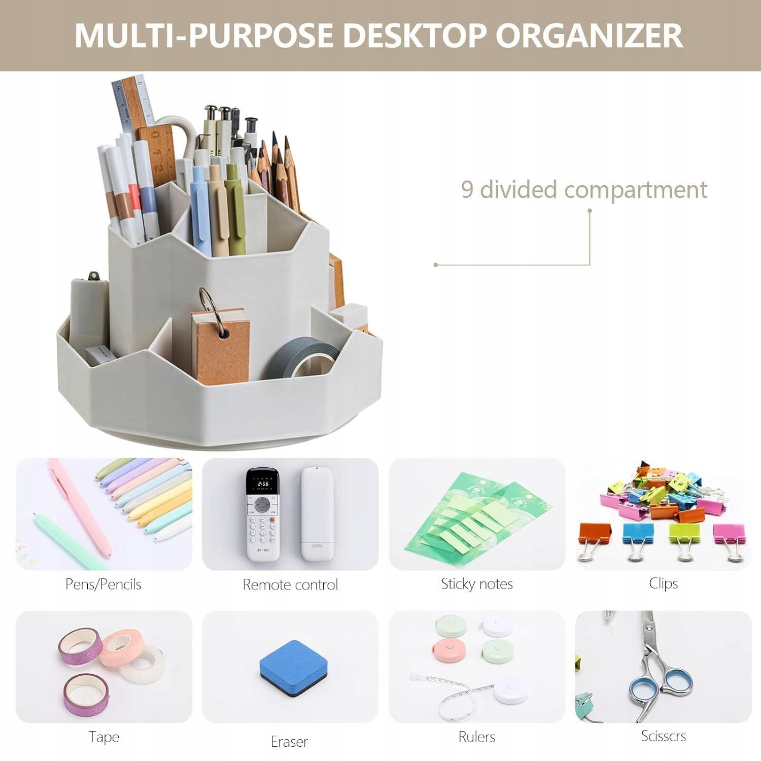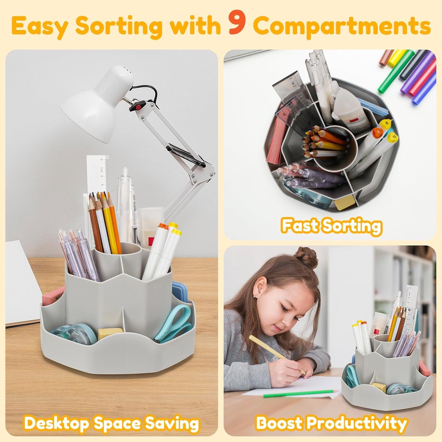 Благодаря 9 отдельным отсекам, вы можете легко сортировать и сохранить необходимые элементы, эффективно используя место на столе.