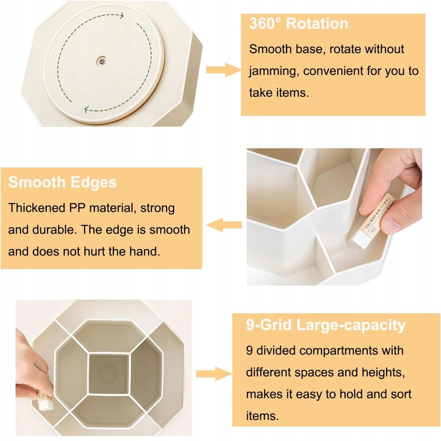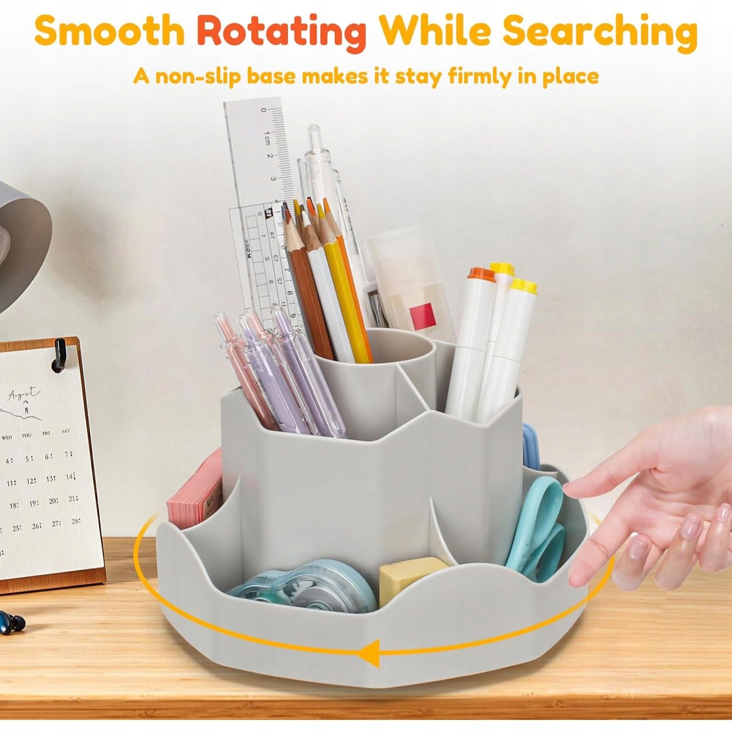 Удобное вращательное основание позволяет вращение на 360 градусов , обеспечивая быстрый доступ ко всем статьям хранения. Плавное движение без запуска или дрожания позволит вам достать ручку, линейку или другие необходимые аксессуары.