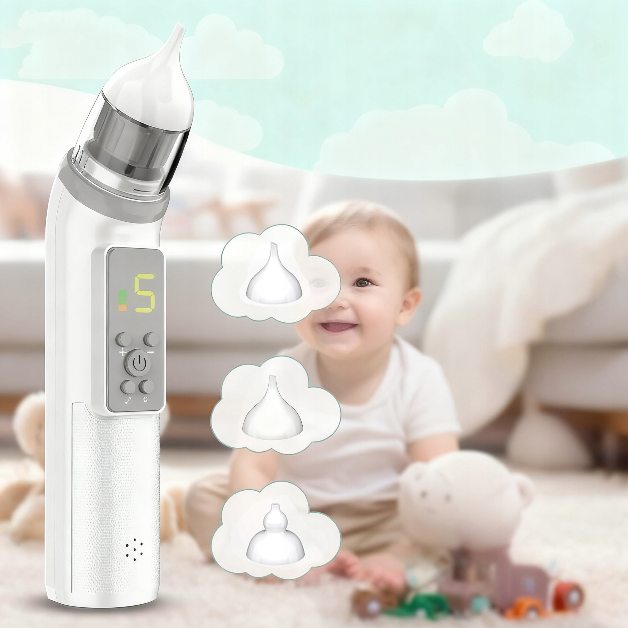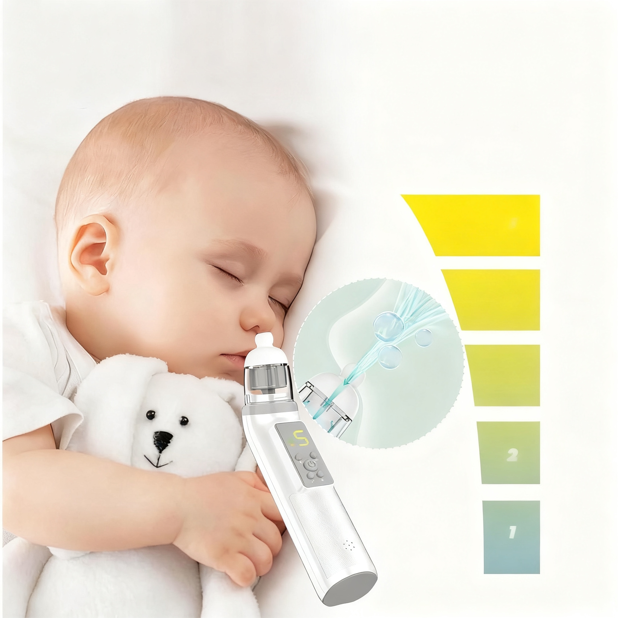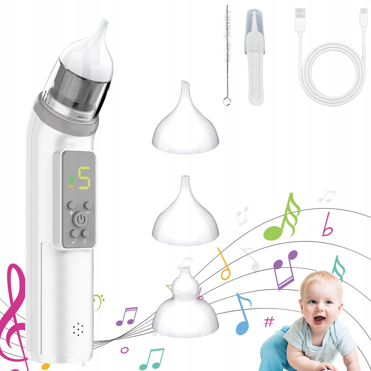 👨👩👧Детский назальный аспиратор, электрический детский назальный аспиратор с 5 уровнями всасывания и 3 силиконовыми насадками, IP65 водонепроницаемый, перезаряжаемый, с функцией воспроизведения музыки, ЖК-дисплей, подходит для младенцев и малышей (белый и серый)👨👩👧