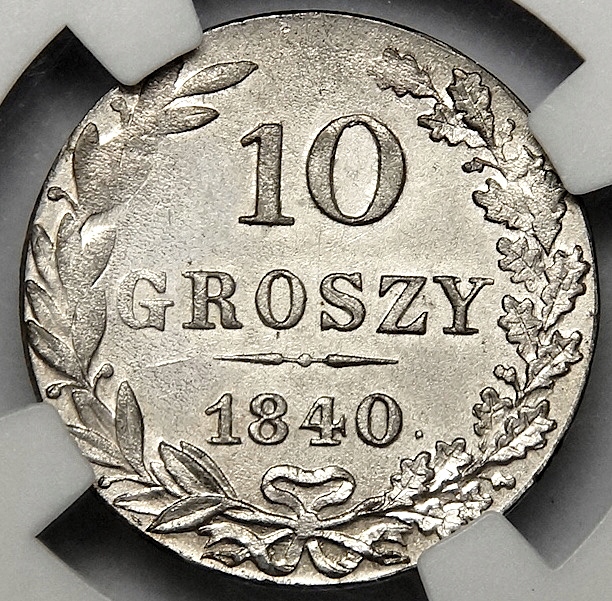 NC 10 Groszy 1840 - DOT после даты - Редкость - Красивая - NGC MS63