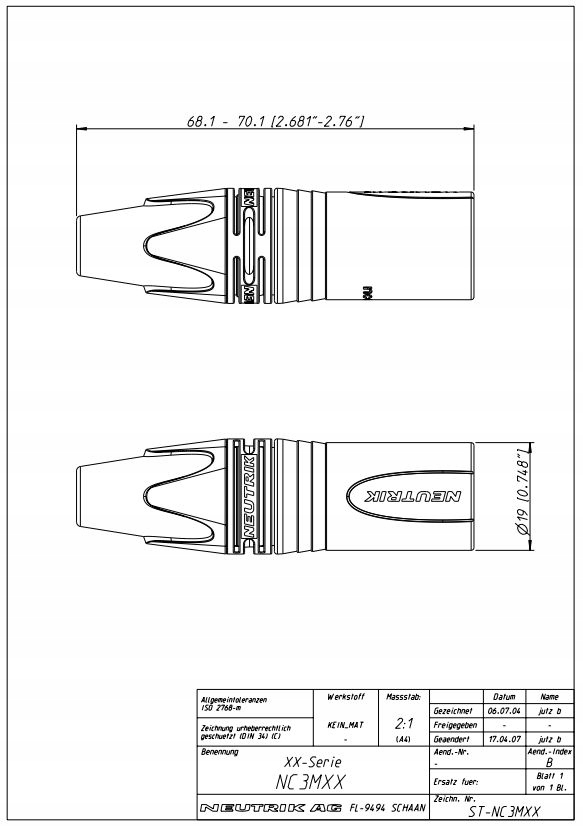 xx, является преемником серии Neutrik RC. Он предлагает несколько новых функций, которые делают его более надежным, проще установлены и улучшают целостность контактов, а также освобождают кабель.