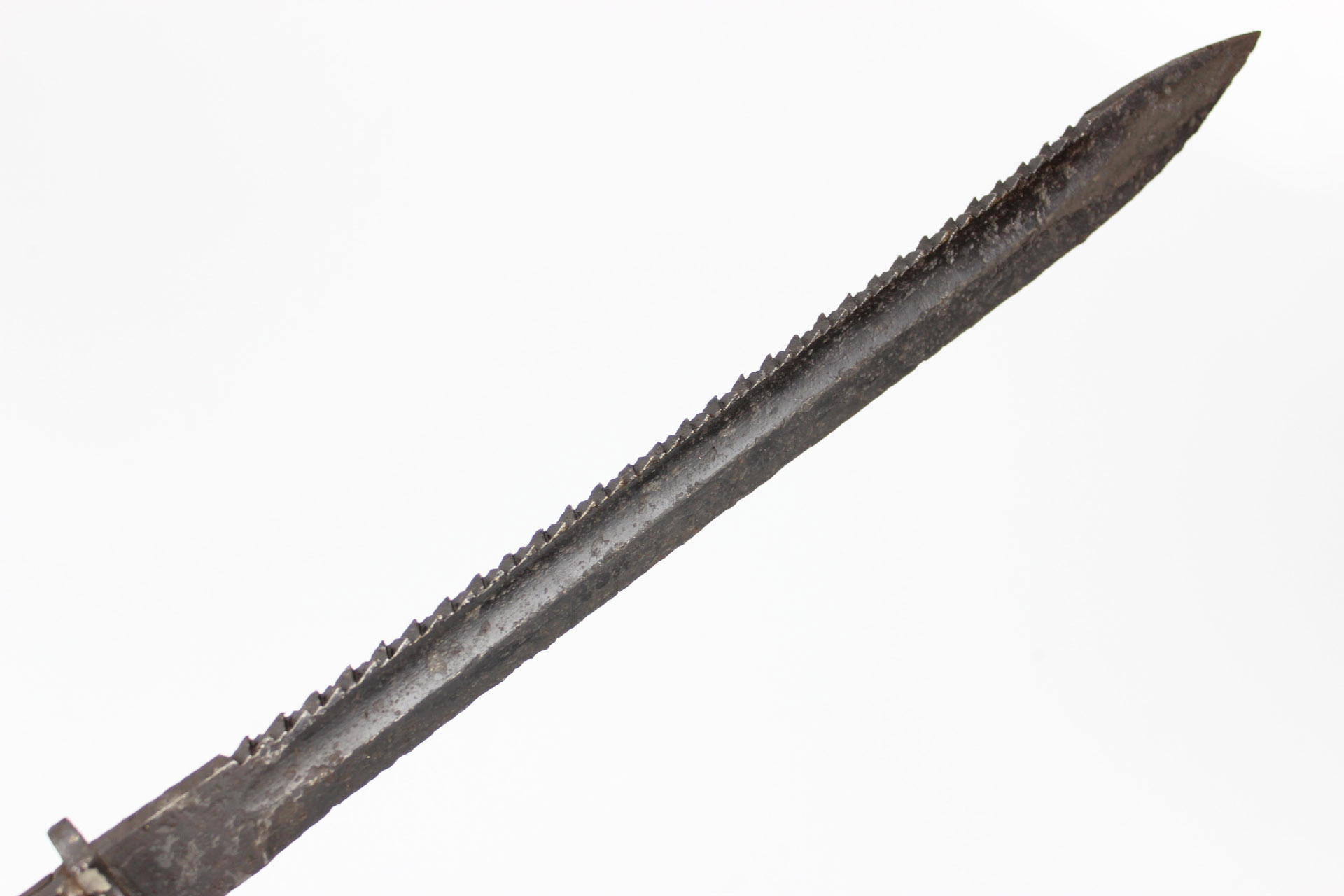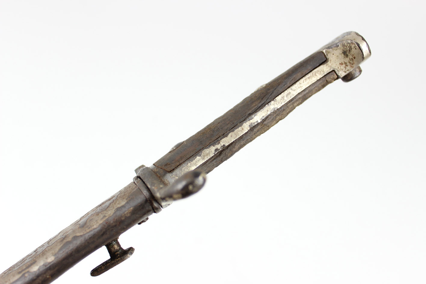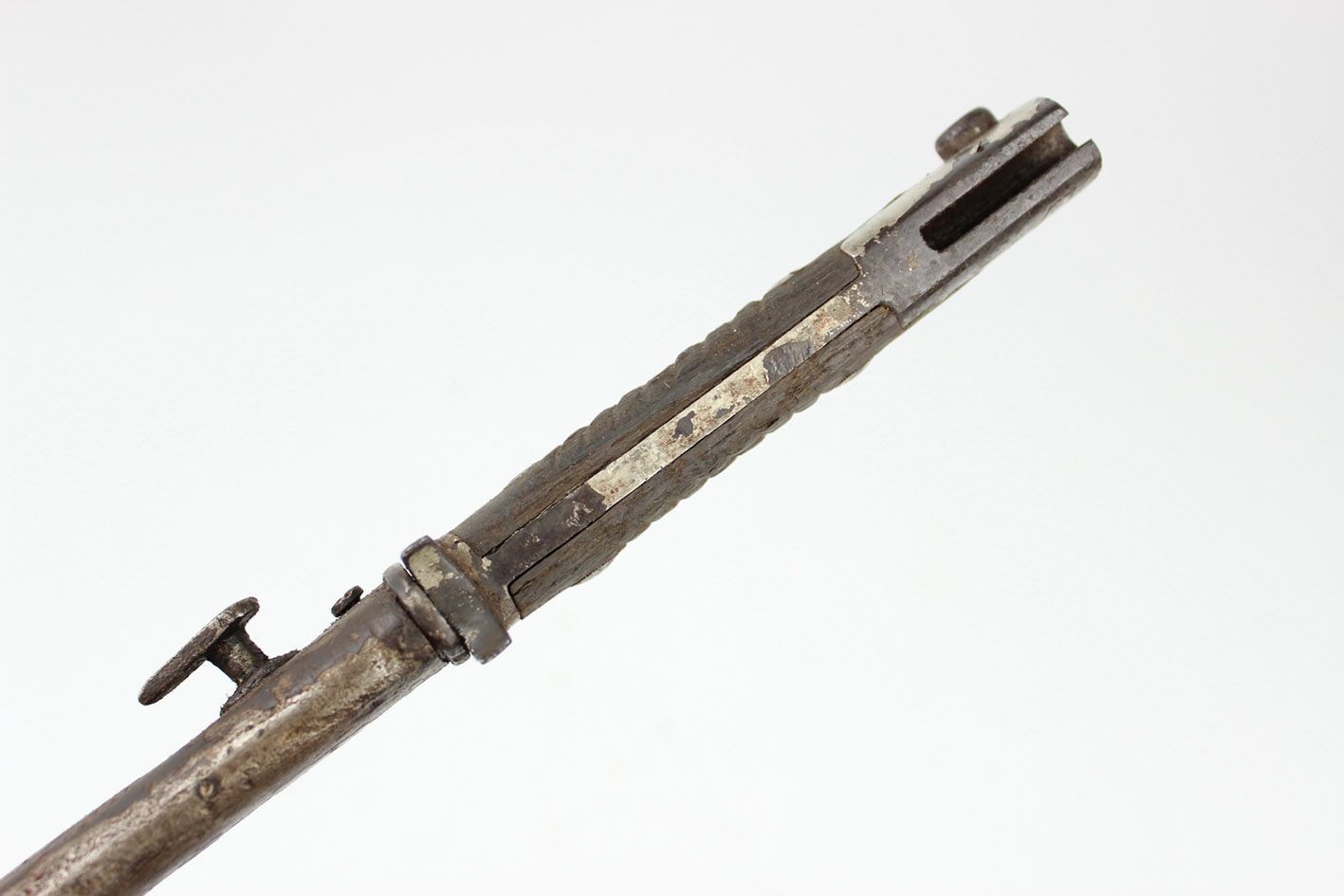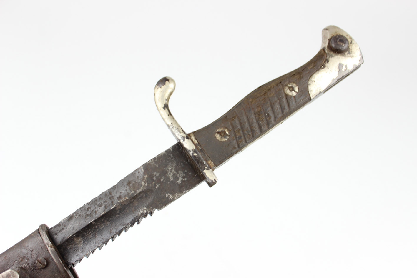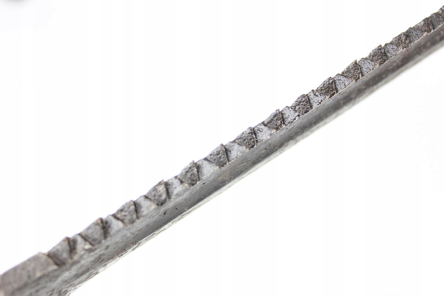 Оригинальный немецкий штык для винтовки Mauser Mod. S98/05 Old Type без пожарной крышки с пилой на задней части лезвия и характерными усами Jelca, покрывающим ствол. Копия не откручена. Одиночное лезвие с двойной вогнутой броней, одна подпись: на пороге подписи производителя лезвия: Weyersberg Kirschbaum & Cie. Эта компания была основана в 1883 году из -за слияния двух очень старых лейблов от Solingen. У обеих компаний была своя товарная марка. Для Вейерсберга это был глава короля, и для Kirschbaum-Głów Knight. После объединения оба товарных знаков появились на лезвиях с 1883 по 1918 год, то есть конец монархии в Германии. Никелевая ручка с деревянной оболочкой с винтами. Кнопка защелки функциональна. Бельдинг с типичными немамиссионными штыками с пилой. К сожалению для ремонта. Влагалище с сильным удушьем. Что именно на фотографиях. Предложение включает в себя широкий выбор военных, включая штыки и многие другие древние безделушки в более низкие цены;)