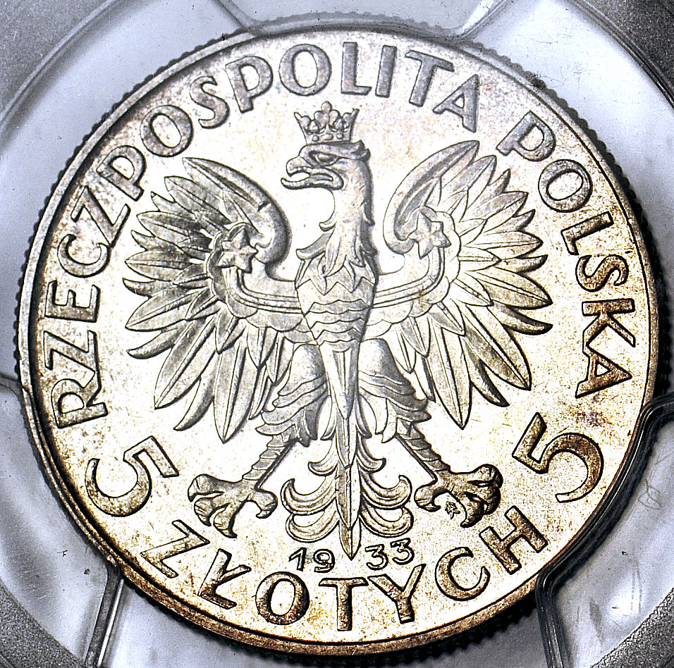 Nd 5 Zlotys 1933 Печать с свежей марки - PCGS MS62