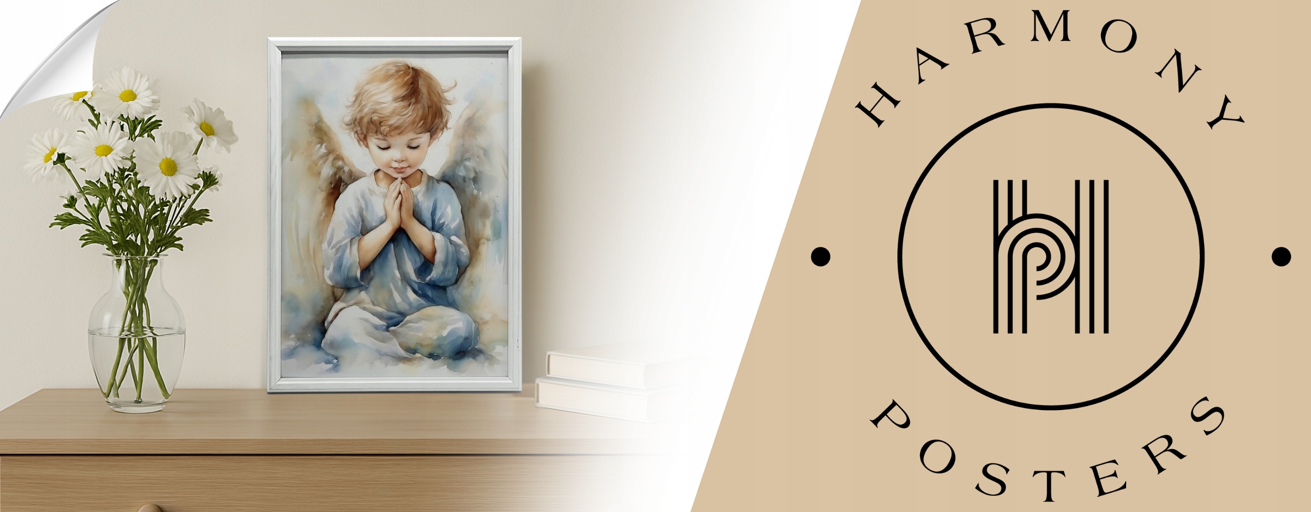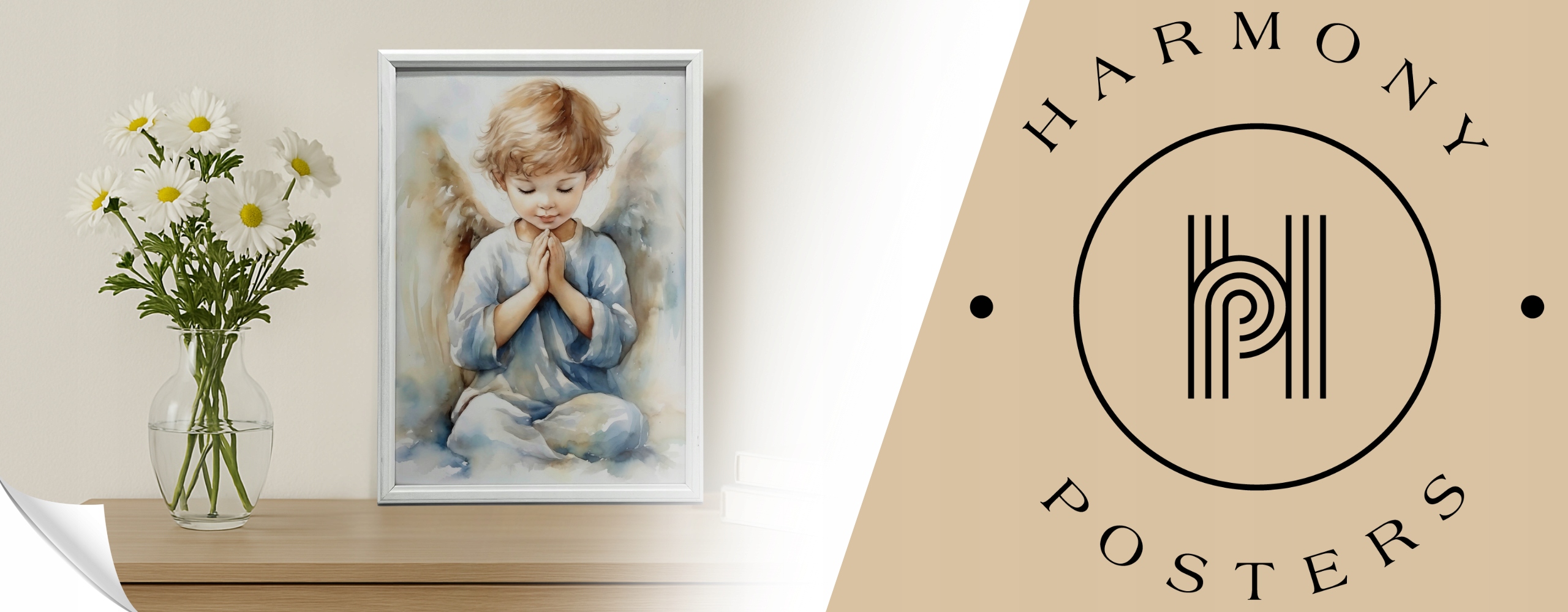 На плакате изображен тонкий, пастельный ангел, чьи поднятые крылья и тонкие цвета создают впечатление легкость и невиновность. Это идеальный дар, который приносит мир и радость.