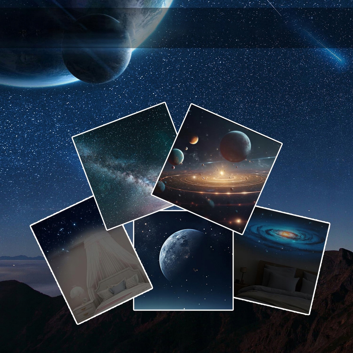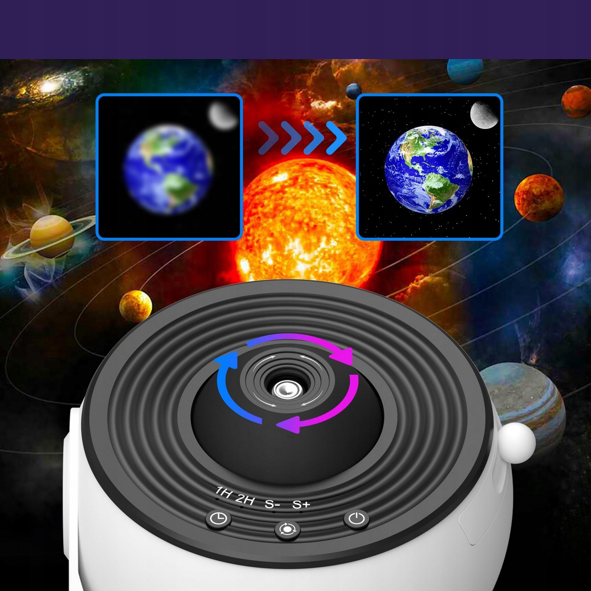 - Поворачивая верхнюю фокусирующую головку для регулировки четкости изображения, проектор звезд галактики поддерживает расстояние проецирования до 3 м/9,84 фута и площадь 16 м²/172,2 квадратных футов, перенося вселенную в ваш дом. Создайте чарующую атмосферу, словно под настоящими звездами. Благодаря вращению на 360° проектор солнечной системы можно проецировать на потолок, стены и пол.