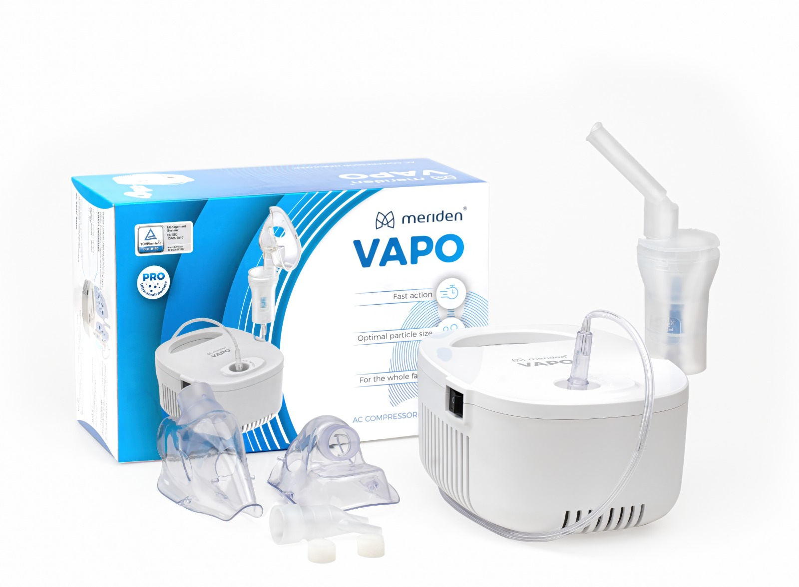 - Модель Meriden Vapo VP-C7 будет работать при лечении многих заболеваний, таких как астма, бронхит, хроническая обструктивная болезнь легких (СОП), инфекции верхних дыхательных путей, такие как синусит или простуда .