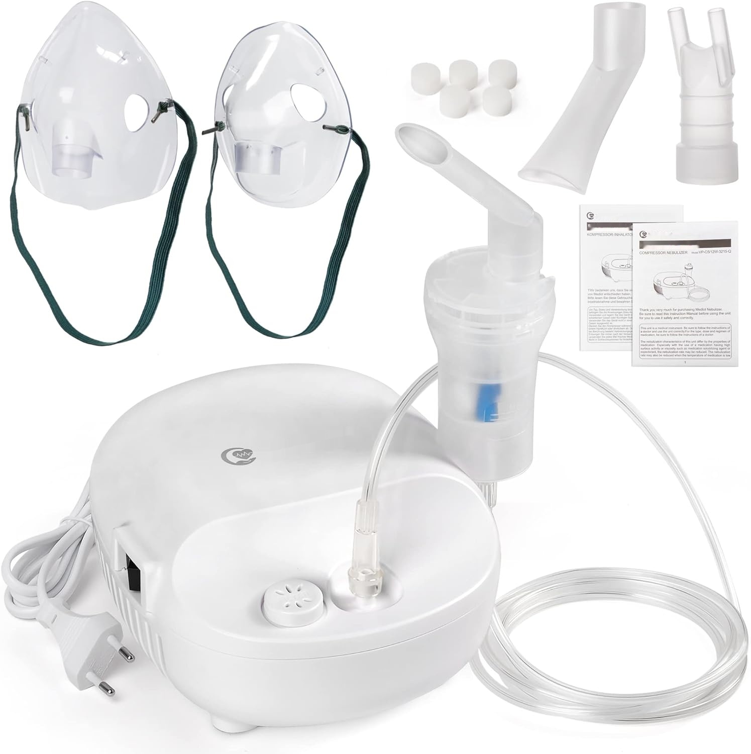 ✅ Содержание: компрессор, набор небулайзеров, мундштук, нос, маска для детей и взрослых, сжатый воздушный шланг, воздушный фильтр и шнур питания