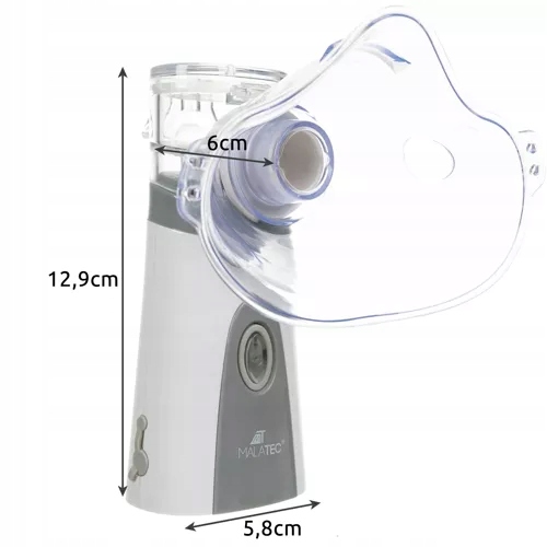 - СПЕЦИФИКАЦИЯ – производитель: Dongguan SIMZO Electronic Technology Co., Ltd; уполномоченный представитель: MedPath GmbH; импортер: Изо Трейд; марка: МАЛАТЕК; Белый цвет; переключатель с подсветкой: да; источник питания: 2 щелочные батарейки типа АА 1,5 В (не входят в комплект, срок службы батареи: непрерывная работа ≥ 1 часа) и кабель DC-USB; потребляемая мощность: < 2 ВА; ток потребления в режиме ожидания: < 0,1 мА; диапазон рабочих температур: 10–40 °C, относительная влажность 10–95%, 86–106 кПа; Диапазон температур хранения: -20–70 °C, относительная влажность 10–95%, 50–106 кПа; режим работы: непрерывный; средняя скорость распыления: ≥ 0,2 мл/мин; размер частиц: процент диаметров менее 5 мкм составляет более 60%; автоматическое отключение: нет лекарства, после 20 минут непрерывного использования; максимальная емкость: 10 мл; ультразвуковая частота: 110 кГц±10 кГц; размеры: 12,9 х 6 х 5,8 см; вес: 0,179 кг; вес в упаковке: 0,369 кг.