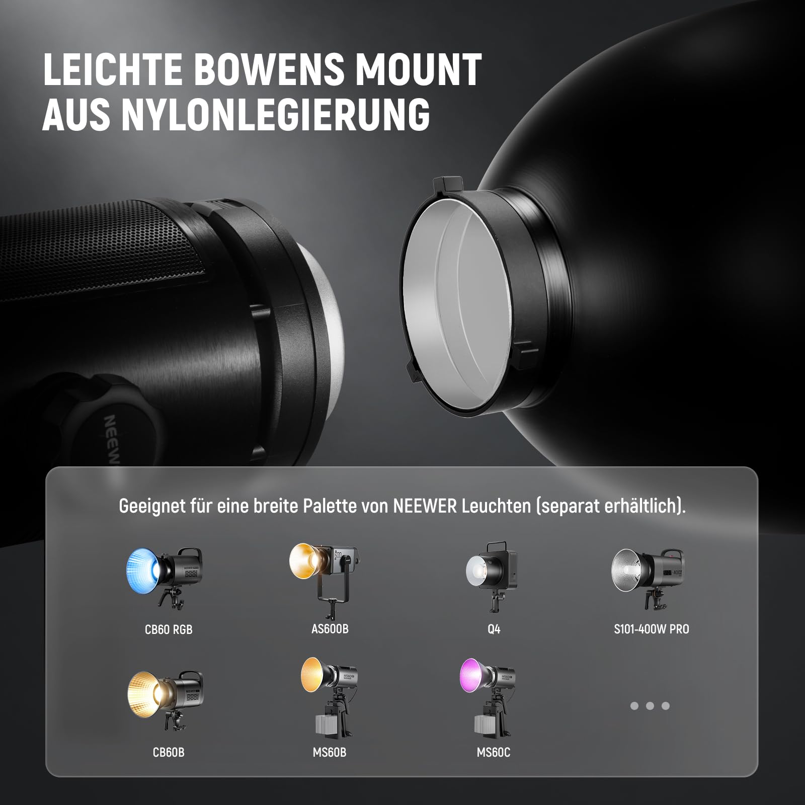 - 【Стандартная ручка крепления Bowens】】 Neewer FR26 Flash Farlight оснащена держателем Bowens для гибкой сборки широкого спектра фото -ламп Bowens, совместим с Profoto, совместимым с Godox, совместимыми с изучаемыми лампами, обеспечивающими ими, абовантными, монолитными. и быстрое демонтаж
