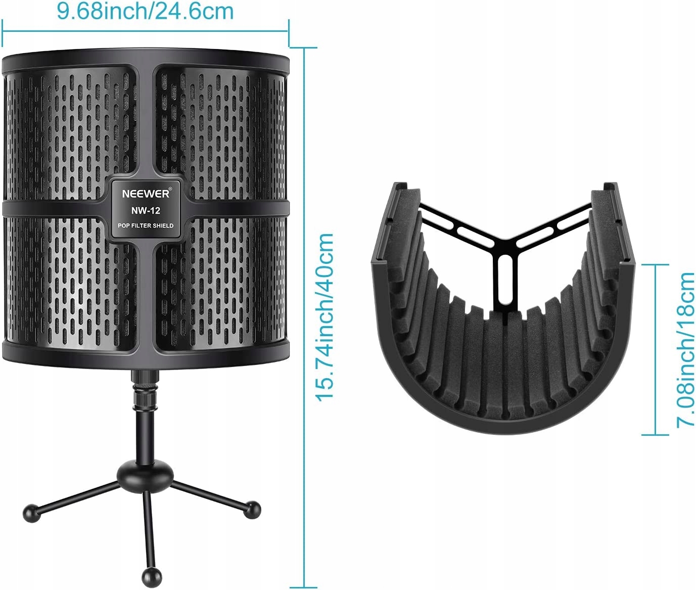 Компактный изолирующий экран для микрофона Neewer с подставкой, звукопоглощающий пенопласт, для студийной звукозаписи, подкастов, вокала, пения, вещания (микрофон и амортизатор не входят в комплект)