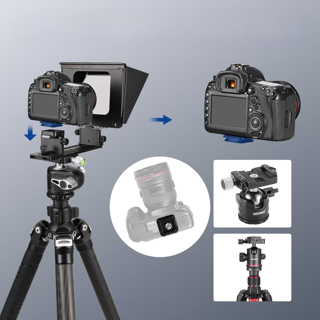 С помощью быстросменного адаптера камеры NEEWER CA009 Arca вы можете надежно зафиксировать камеру одним щелчком мыши сверху без необходимости выравнивания. Обеспечивает вертикальное положение на 2,1 см и горизонтальное положение на 15 см, совместимо с камерой Canon Sony Nikon Fujifilm Lumix и беспроблемную передачу данных с телесуфлера. к головке штатива и стабилизатору RS2 RSC2 RS3 RS3 Pro для различных снимков