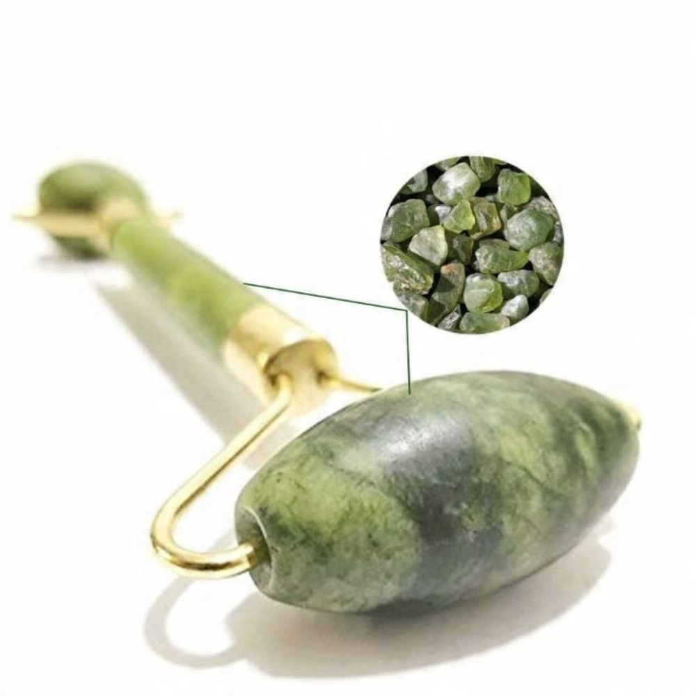 Двусторонний массажный ролик для лица изготовлен из 100% натурального нефритового камня. Гладкая поверхность предотвращает травмы во время массажа лица. Ролик имеет два массажных ролика. Большой валик идеально подходит для массажа лица, декольте, шеи или рук. Маленький валик предназначен для массажа области глаз и носа.