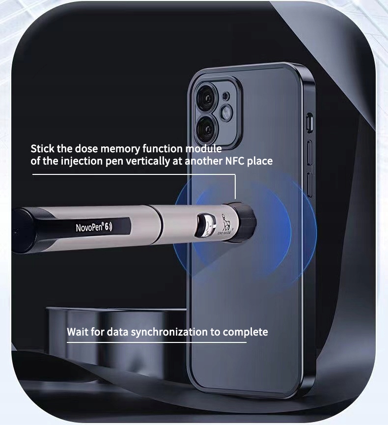 Функция памяти дозы nuoheh pen 6 поддерживает технологию тесных коммуникаций (NFC), которая может отправлять журналы личных инъекций в интеллектуальные устройства