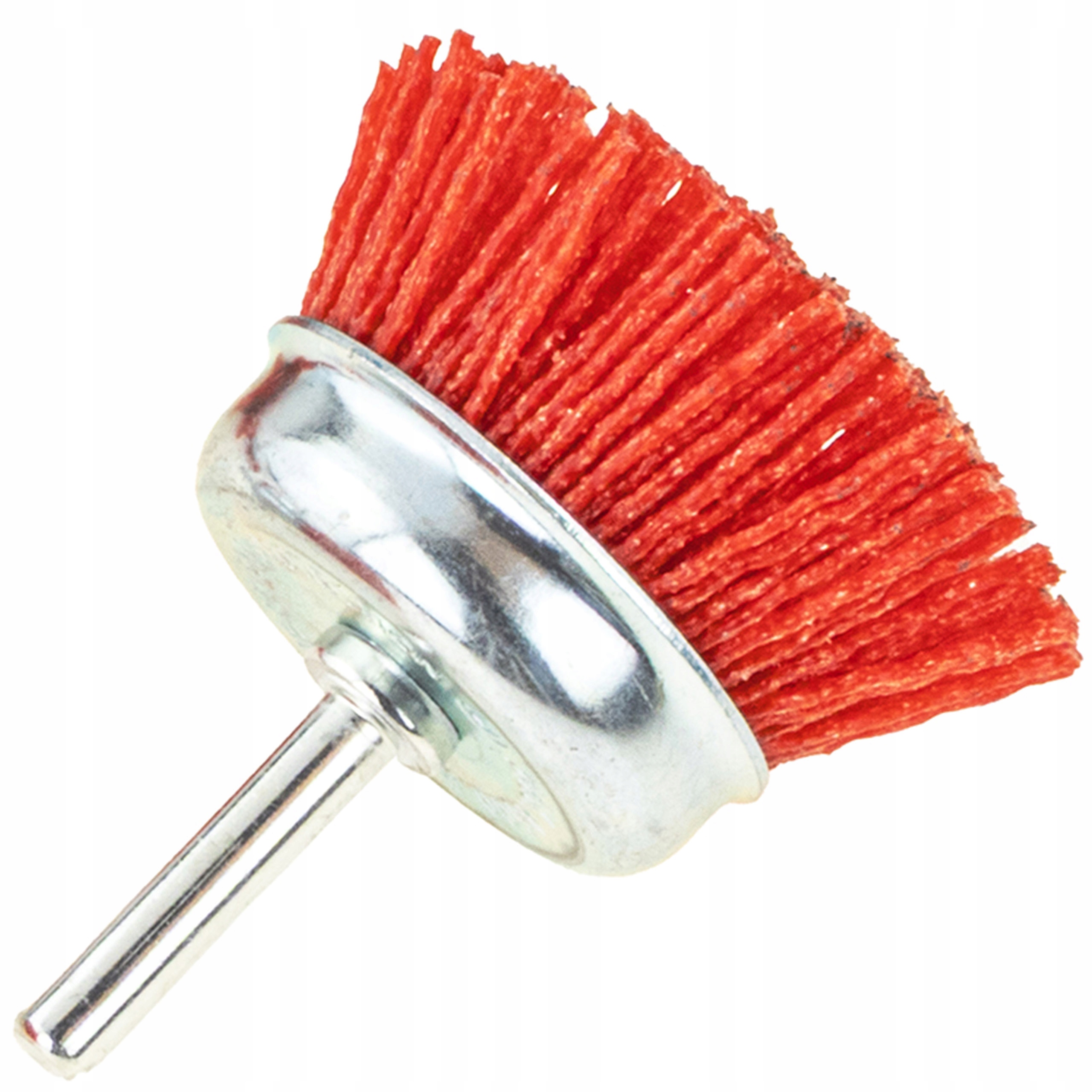 Нейлоновые щетки изготовлены из плотного и упругого нейлонового фибрина с алюминиевым карбидом, благодаря которой они идеально адаптируются к форме субстрата. Широкое использование кистей для очистки, полировки и сглаживания металлических или деревянных поверхностей с помощью тренировки. Абразивный материал, используемый в нейлоновых волосах, позволяет аккуратно удалять примеси, лаки, краски или заусенцы на чисткой поверхности. Максимальный рекомендуемый оборот составляет 4500 об / мин.