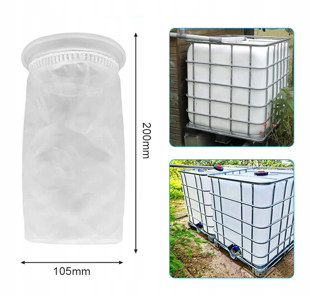 ✔️✔️ Размер: Внешний диаметр каждого колпачкового фильтра составляет примерно 105 мм, а длина примерно 200 мм. Сменный нейлоновый фильтр для дождевой воды подходит для большинства контейнеров, доступных на рынке.
