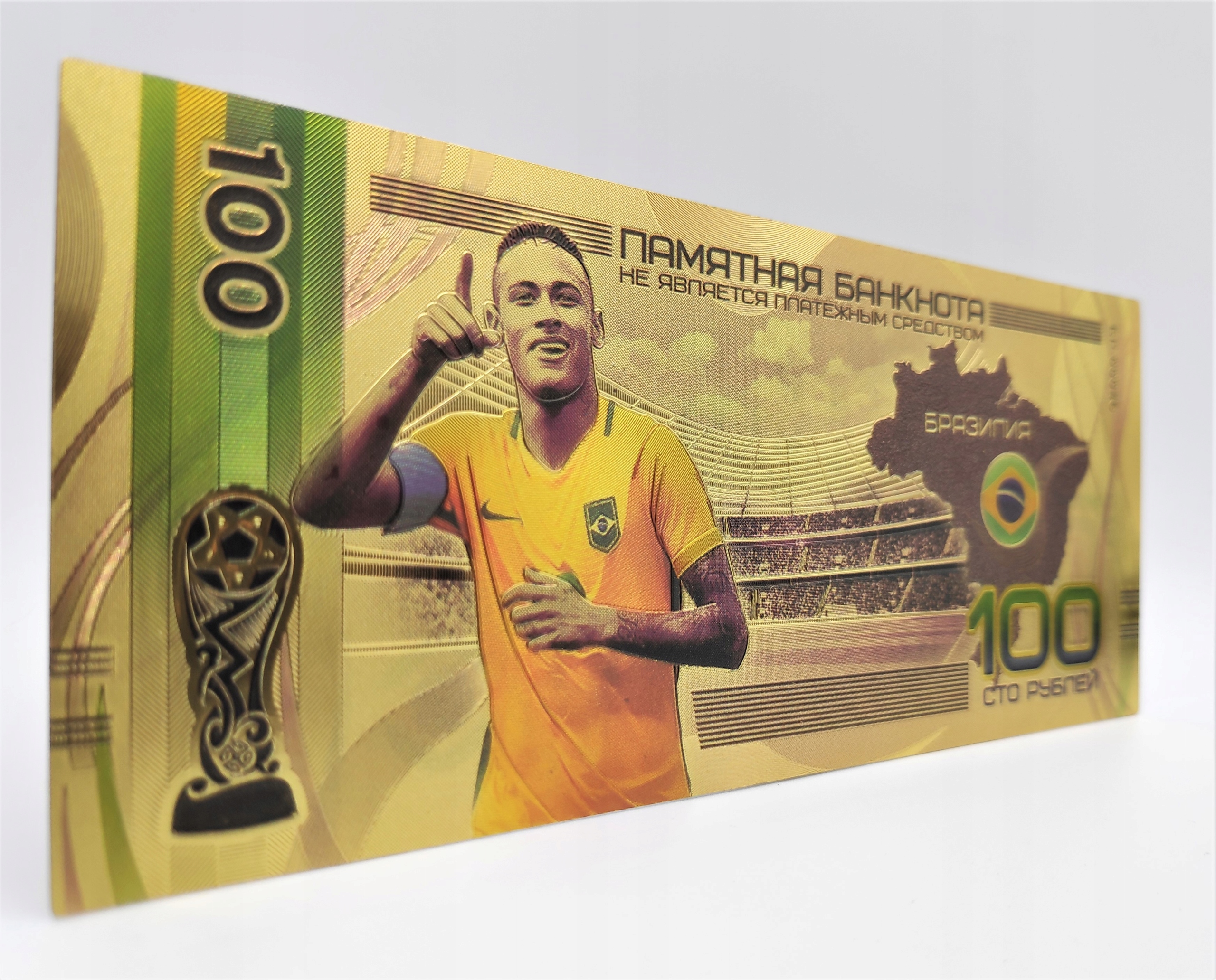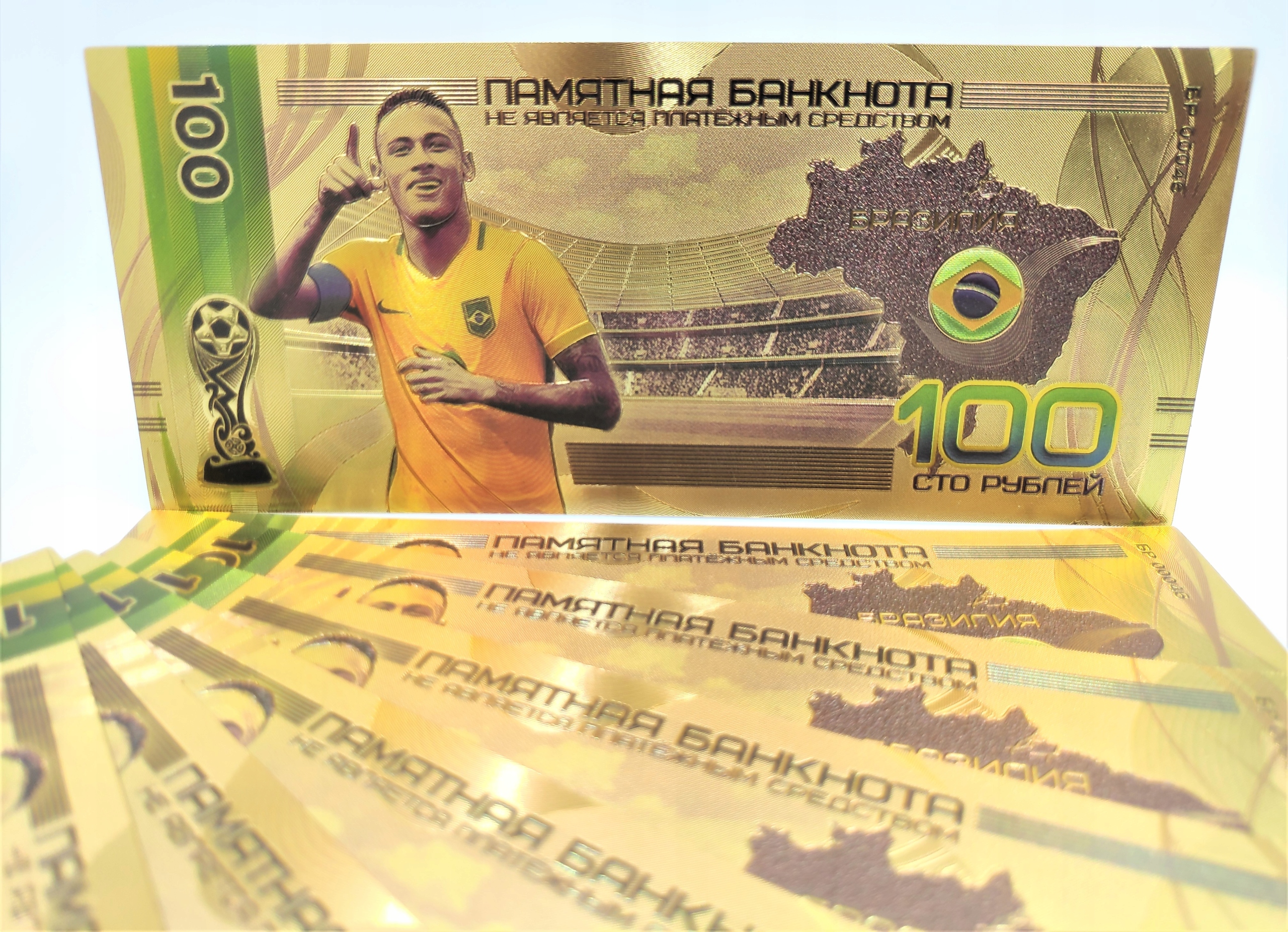 Продаю красивую позолоченную банкноту номиналом 100 рублей с изображением Неймара-младшего