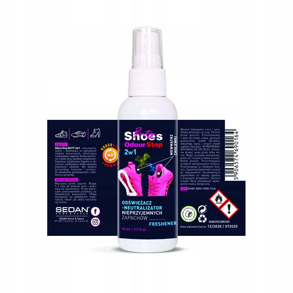 Обувь Odoustop® для обуви b> является эффективным нейтрализатором и освежителем на основе спирта, которая устраняет и заменяет неприятные запахи свежими нотами. Приготовление не только маскирует запахи, но и содержит сильные ингредиенты, которые удаляют молекулы, ответственные за их образование, независимо от источника. Высокое содержание алкоголя увеличивает гигиене, идеально подходит для спортивных, рабочих, кожаных обуви, а также для спортивных мешков и рюкзаков. содержит фиксирующий агент, который расширяет работу продукта и защищает от неприятного запаха дольше.
