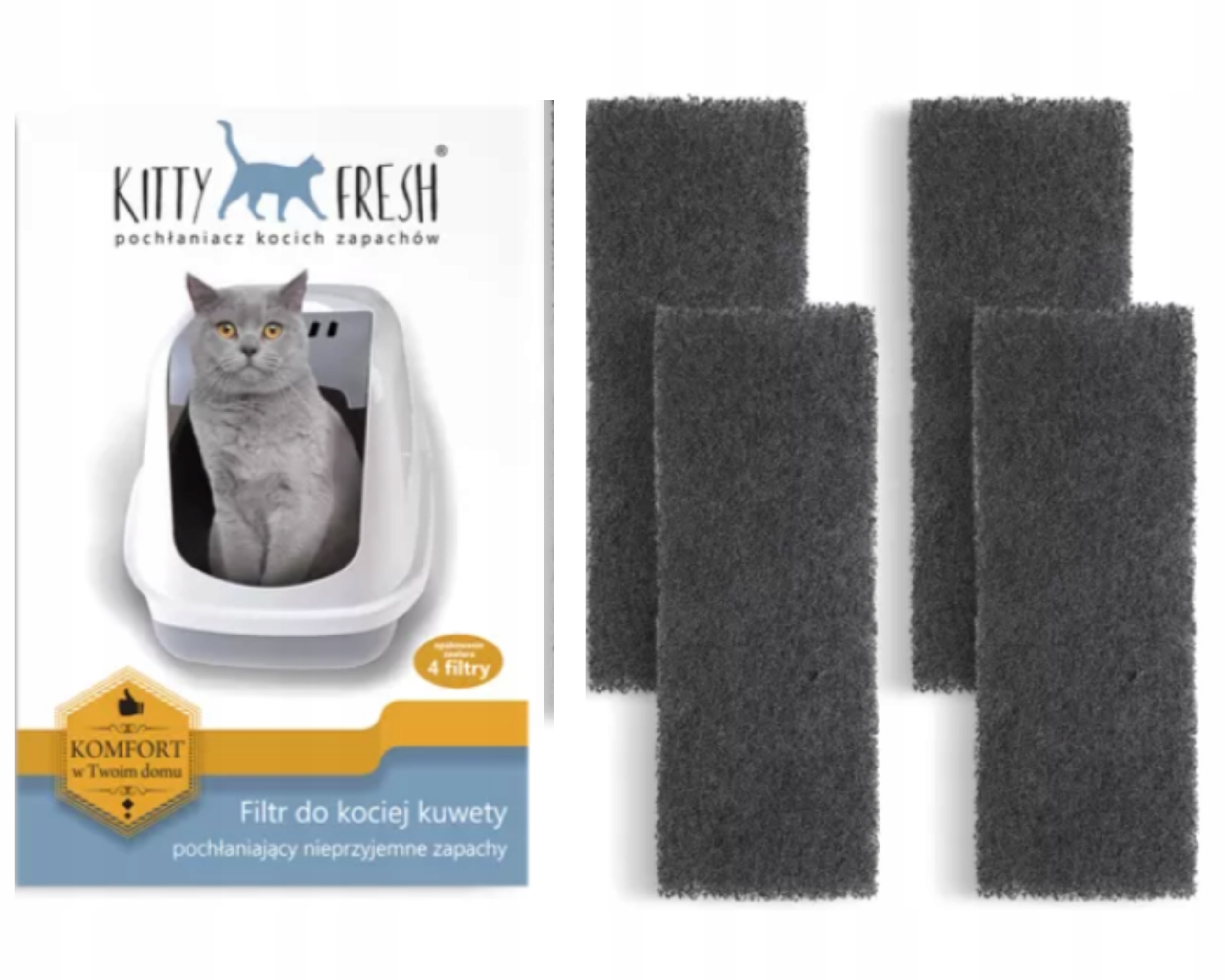 Просто достаньте фильтр из упаковки и положите его в туалетный лоток. В упаковке 4 угольных фильтра размером 6×18 см, но фильтры можно свободно обрезать для получения нужного размера. Поглотитель запахов KittyFresh – безопасный продукт, нетоксичный для окружающей среды, людей и животных.
