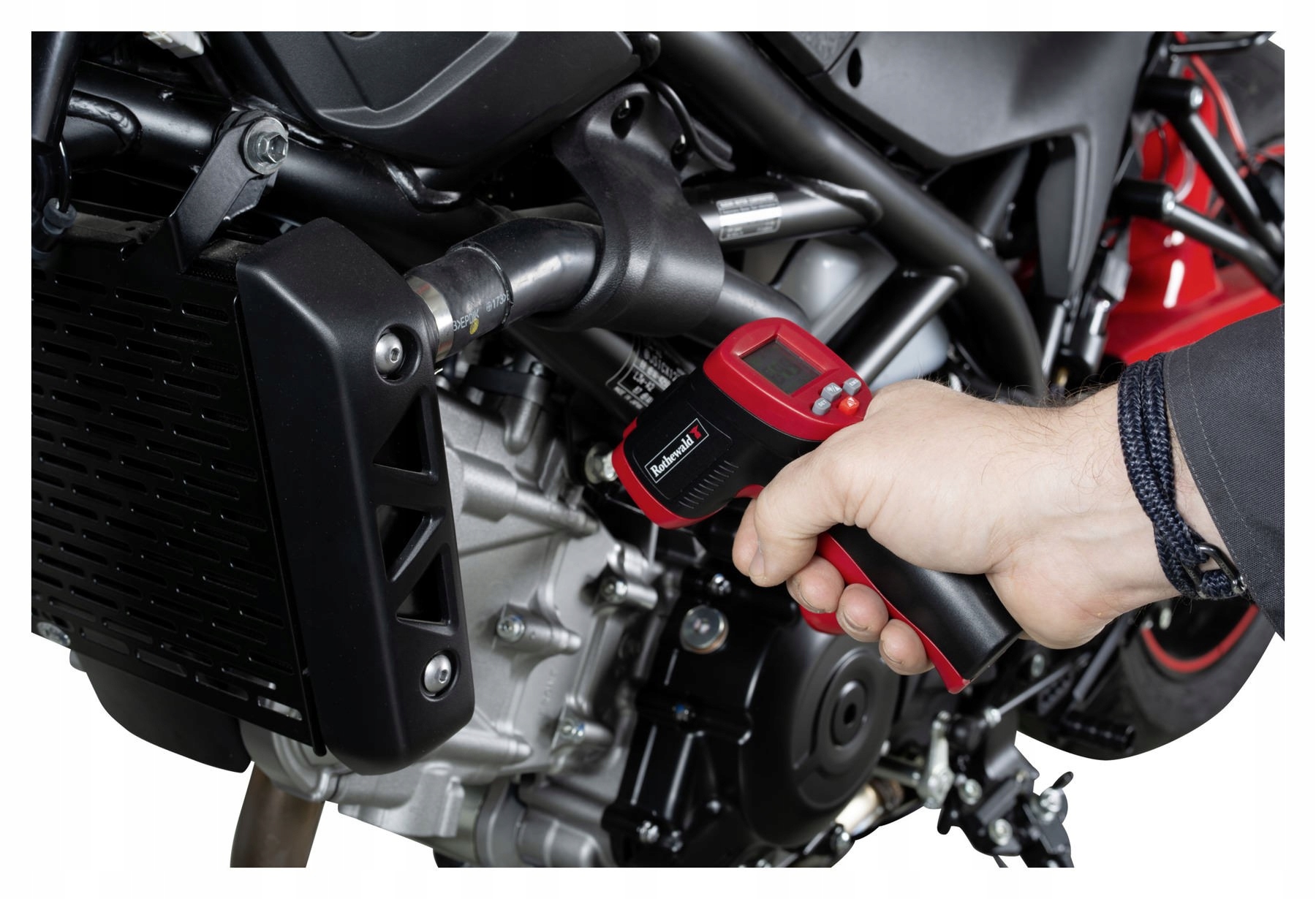 В различных дисциплинах гоночных спортив Также дома мастерская DIY, быстрый и, прежде всего, все результаты в диагностике мотоцикла имеют особое значение. Вы хотите, и вам просто нужно знать, все ли у вас хорошо. Например, правильная ли температура во всех областях вашего привода, шин, выхлопных систем и схем охлаждения? Для этой цели был создан инфракрасный термометр Ротевальда. Это точное устройство, которое разрешает бесконтактные измерения и сразу же представляет результаты, так что ваш мотоцикл всегда обладает полной производительностью и просто «здорово».