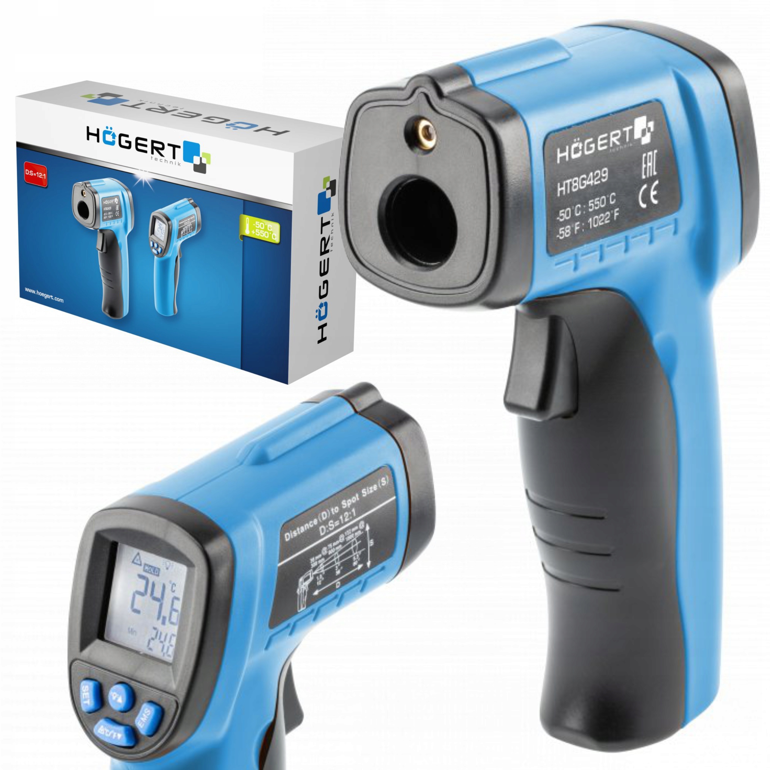 Цифровой термометр, предназначенный для не -контактного измерения температуры объектов, расположенных за пределами досягаемости, на значительном расстоянии, опасной к прикосновению, трудности для достижения или движения. Используется в основном в профессиональных семинарах и автомобильных услугах, в промышленности, строительной отрасли или гастрономии