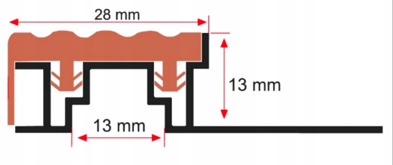 Лестничный профиль из алюминия (+ПВХ) 13мм