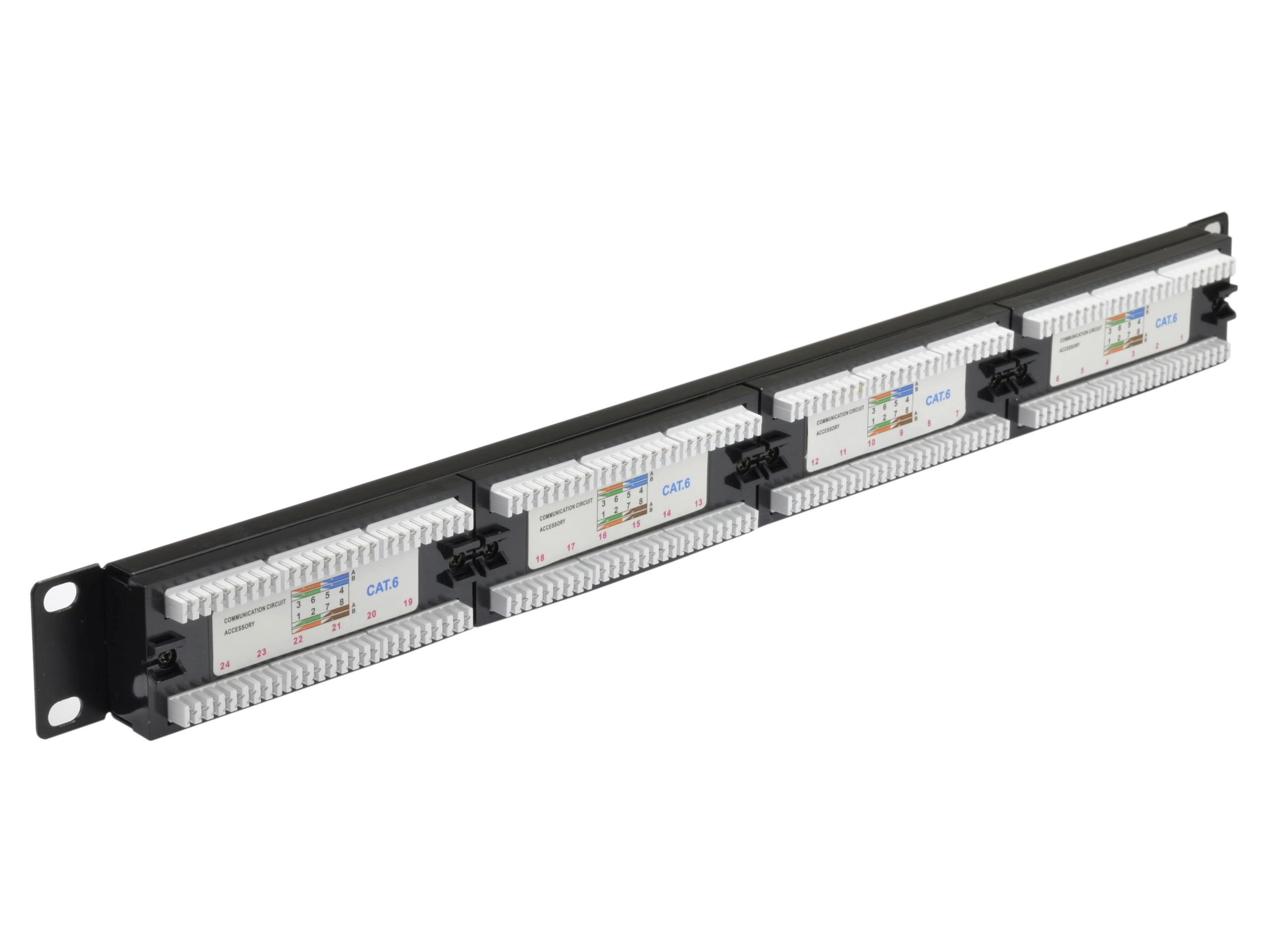 - Патч-панель выполнена в стандарте 19 дюймов, высотой 1U.