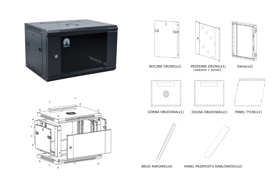 Предложение продукции бренда NEKU включает в себя широкий выбор компонентов с привлекательной ценовой дифференциацией, в том числе: патч-панели, удлинители, 10-дюймовые и 19-дюймовые шкафы RACK с аксессуарами, патч-корды, розетки и трапеции, инструменты для электромонтажа, тестеры, аксессуары LSA, кабели и провода, а также все виды вилок и разъемов.