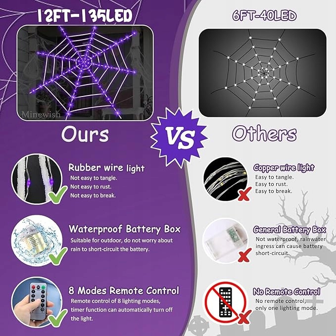 - Создайте свой собственный стиль для Хэллоуина】: просто используйте эти огни в форме паутины на Хэллоуин с другими украшениями, такими как паутина, пауки, черепа, висящие призраки и многие другие, чтобы создать свои собственные трюки. Позвольте себе быть увлеченным вашим воображением и создать темную и ужасную атмосферу для гостей вечеринки Хэллоуина, используя эти необычные светильники, напоминающие сеть пауков. Это удивит ваших гостей.