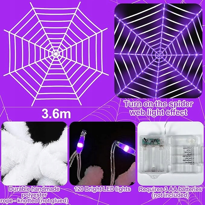 - Впечатляющее украшение для Хэллоуина】: Набор содержит гигантскую паутину, пилотный и водонепроницаемый корпус батареи, идеально подходит для украшения сада и дома. Легко в использовании, не требует сборки, просто держитесь.