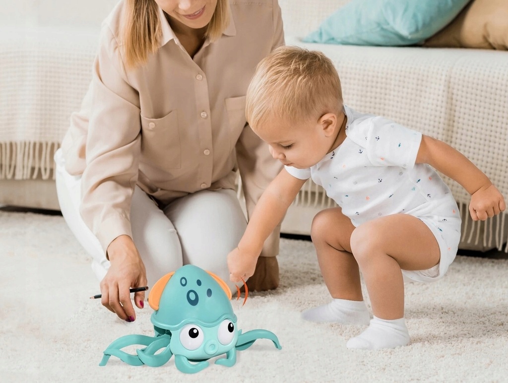 Помимо ползущего осьминога, он также играет музыку - благодаря этому во время игры, чувства слуха ребенка также будут стимулированы.
