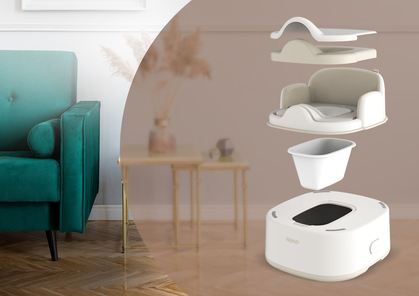 Neno Ampio превращает повседневные проблемы в удовольствие. Благодаря функции 3-в-1 он растет вместе с вашим ребенком. Он служит горшком, крышкой для унитаза и подставкой для ног, поэтому им может пользоваться ребенок от 1 до 6 лет. Кроме того, это экономит место и избавляет от необходимости покупать отдельные аксессуары. Благодаря складной конструкции и легкой чистке он наведет порядок и уют в вашем доме.