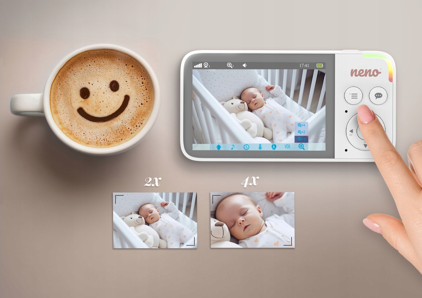4x Zoom Вы хотите проверить, спокойно ли ребенок спит или он сместился в кроватке? Благодаря четырем -времени Zoom Neno Lel, вы можете тщательно наблюдать за каждым движением и деталями, без необходимости войти в комнату. Это практическое решение, которое дает вам лучший предварительный просмотр ситуации - из любой точки дома.