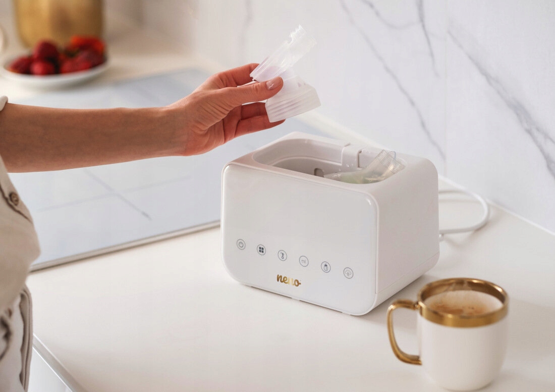 С помощью Neno Vivo можно один раз стерилизовать детали двойного молокоотсоса.