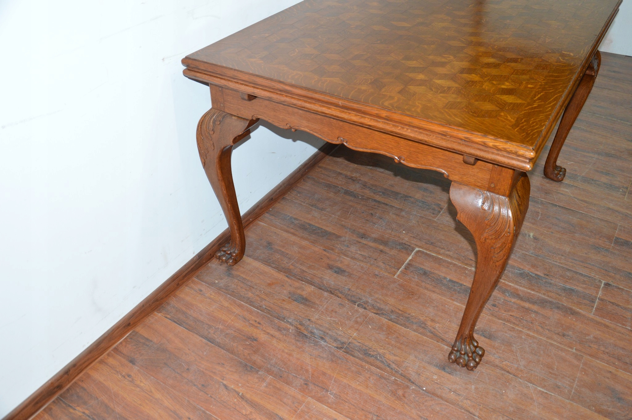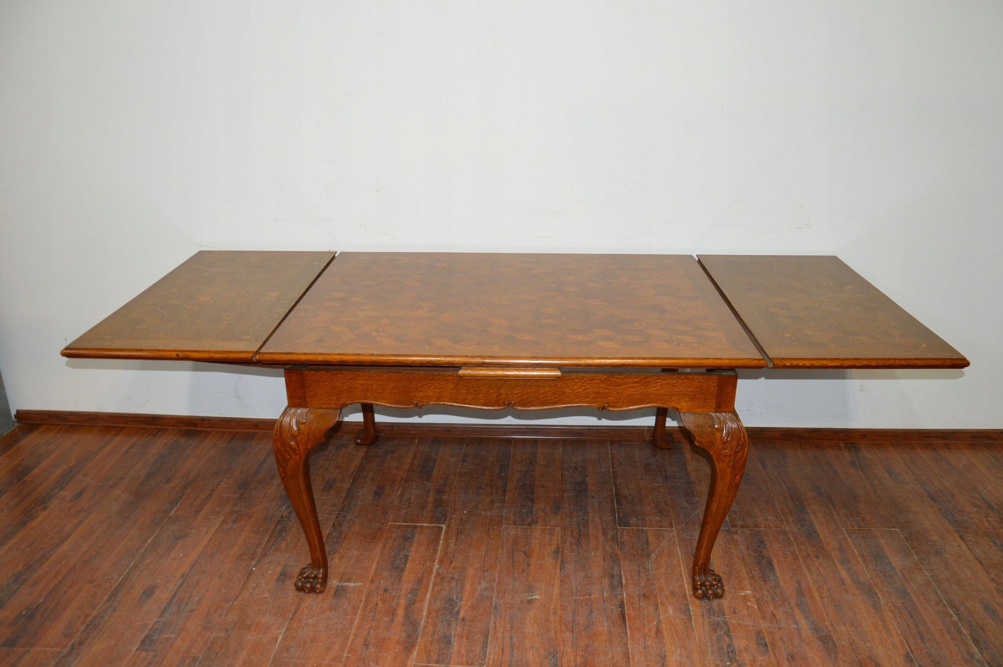 Красивый нео -французский набор лап львов очень массивный. Складная таблица. Страна происхождения Франция. Стабильные стулья, сиденья Springs, новый материал для обивки