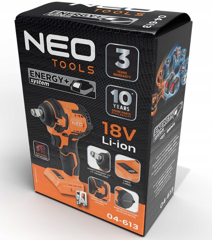 Просматривая «NEO 04-613 БЕЗЩІТКОВИЙ УДАРНИЙ КЛЮЧ 18V 350Nm 1/2" ENERGY+ COMPACT.», вы можете быть уверены, что данный товар из каталога «Ударные гайковерты» будет доставлен из Польши и проверен на целостность. В цене товара, указанной на сайте, учтена доставка из Польши. Внимание!!! Товары для Евросоюза, согласно законодательству стран Евросоюза, могут отличаться упаковкой или наполнением.