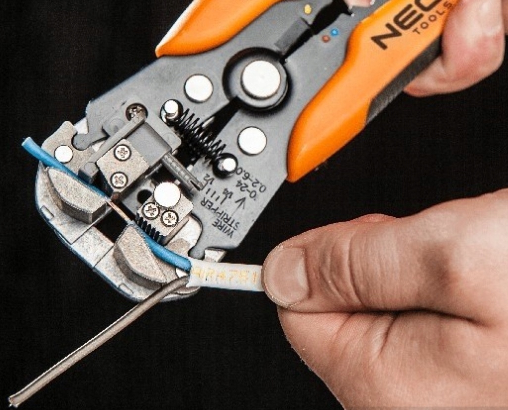 Автоматический инструмент для зачистки проводов с помощью плоскогубцев ведущего типа.
