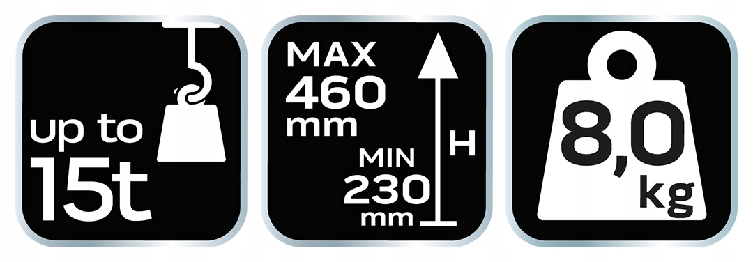Удачный 15 тонн 10-455 Neo-это элемент из твердой стали с максимальным весом подъема 15 тонн. Он предлагает возможность подъема с 230 до 460 мм. Он будет использоваться в мастерской, услугах и транспорте. Это также отличное дополнение к гаражному оборудованию. Лифт весит всего 8 кг. Это мобильный и простой в использовании. Соответствие европейским стандартам безопасности обеспечивается сертификатом CE. Бренд NEO рекомендуется для профессионалов.
