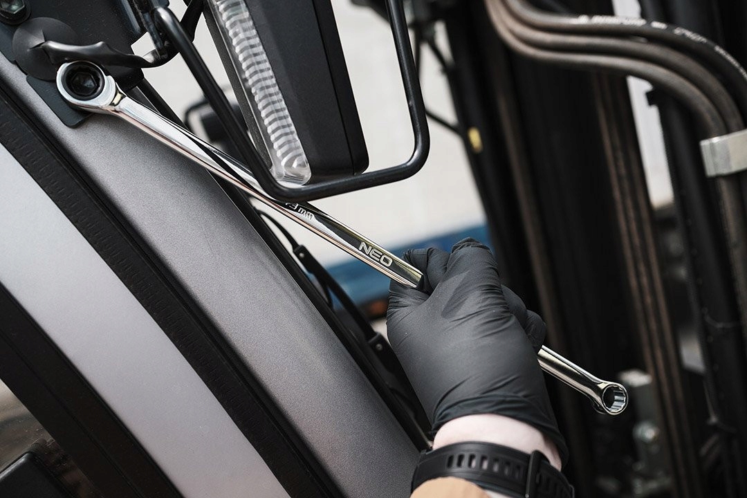Ключи для глаз с храповым, длинным, набор из 6 штук, 8-19 мм, мягкий корпус 09-370 Neo-это набор профессиональных ключей в размерах: 8, 10, 13, 16, 17, 19 мм.