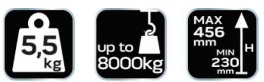 Стоечный подъемник NEO Tools изготовлен из прочной стали. Максимальный подъемный вес составляет 8 тонн. Высота подъема от 230 до 456 мм.