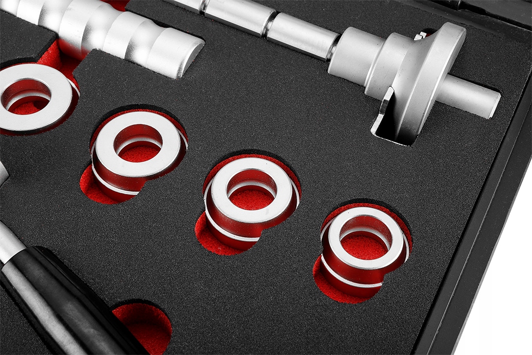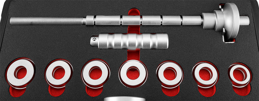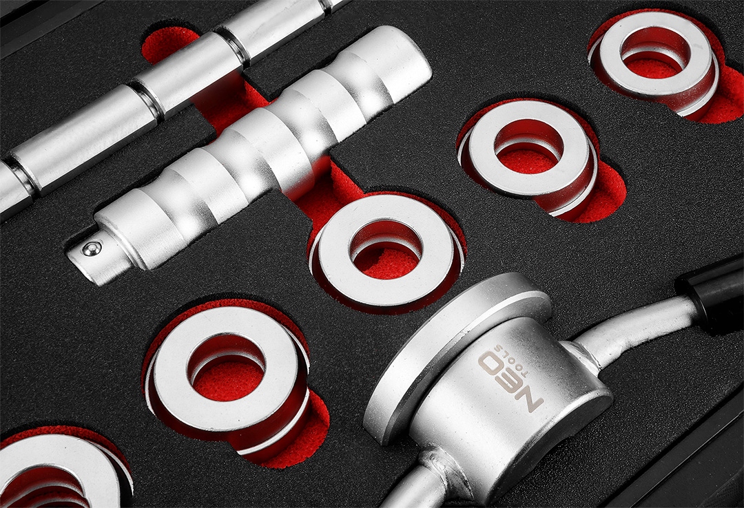 Набор инструментов для установки и демонтажа подшипников рулевой колонки НЕО 10-588 на мотоциклах представляет собой практичный набор мотоинструмента, предназначенный для монтажа и демонтажа подшипников рулевой колонки на автомобилях данного типа. В комплект входит направляющая, Т-образная ручка и 7 штук переходников под подшипники диаметром от 32 до 46 мм. Все упаковано в удобный чемодан. Инструменты бренда NEO рекомендуются для многолетнего использования.
