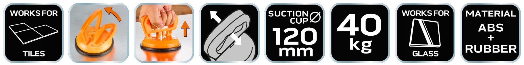 Диаметр присоски 120 мм, грузоподъемность до 40 кг.